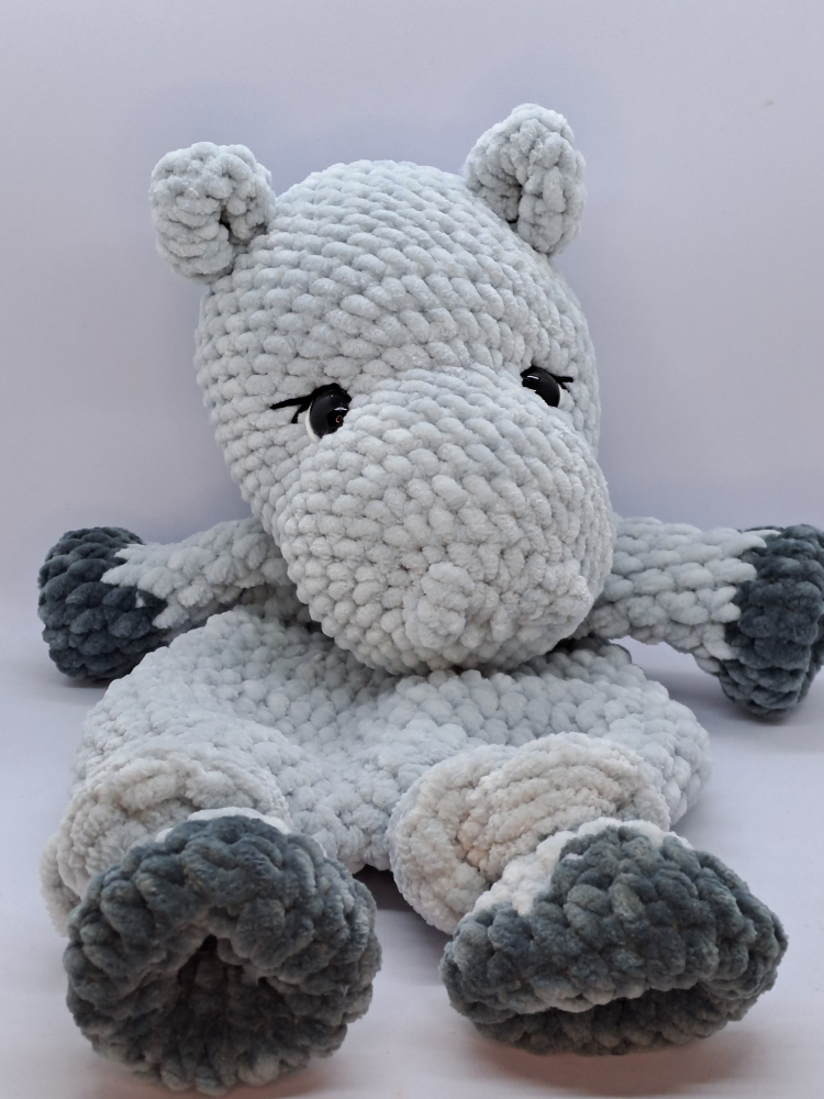 Ručne háčkovaný hroch Mojko poteší detičky malé i veľké. Je vyrobený z kvalitnej žinilkovej priadze vhodnej na výrobu tetských hračiek.