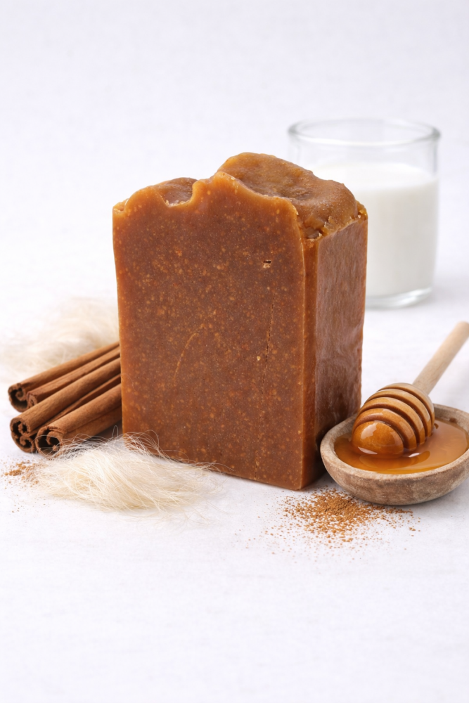 - s omamnou škoricovou vôňou s nádychom luxusu vďaka pridanému medu, koziemu mlieku a prírodnému hodvábu