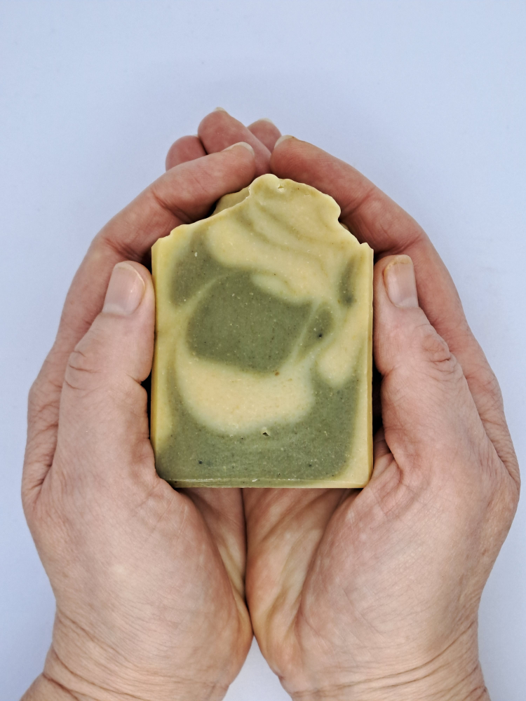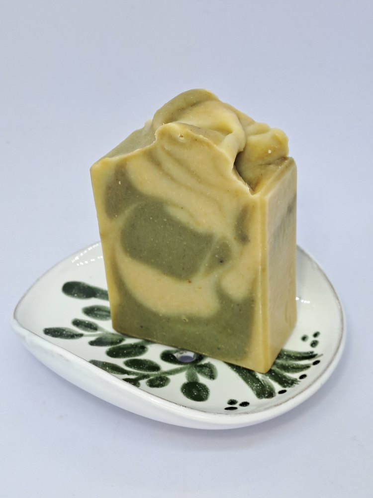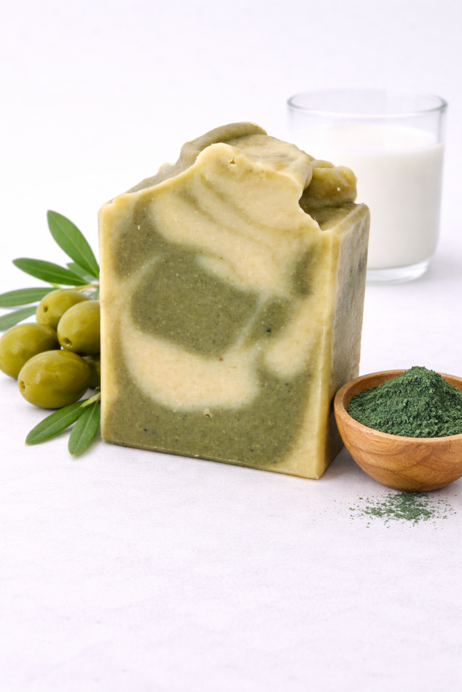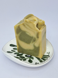 - prírodné ručne robené mydlo s olivovým olejom kozím mliekom a so spirulínou